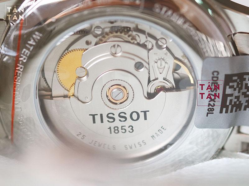 Tissot Tradition T063.428.11.058.00 được trang bị bộ máy automatic Thụy Sĩ hoạt động bền bỉ, chính xác và ổn định. Bộ máy được cung cấp bởi nhà máy ETA với số hiệu calibre 2825-2. Đây là một bộ máy cơ tự động được sử dụng phổ biến của Tissot, trang bị 25 chân kính hoạt động với tần số 28800 nhịp/giờ và thời gian trữ cót khoảng 40h nếu được lên cót đầy đủ và sử dụng trong điều kiện phòng lab, sai số đồng hồ chỉ ở mức +-20 s/ngày. Các quý ông có thể sử dụng thoải mái hàng ngày mà không lo đến các vấn đề hoạt động và sai số trên đồng hồ. Tuy nhiên, phụ thuộc vào cách sử dụng khác nhau cùng ảnh hưởng của nhiều yếu tố môi trường, sản xuất gia công hàng loạt,... mà mức dự trữ cót thực tế sẽ thấp hơn con số nhà sản xuất đưa ra. Bộ máy hoạt động dựa trên chuyển hóa năng lượng từ vận động cổ tay, không có pin nên người đeo cần mang ít nhất 8 tiếng mỗi ngày để tái nạp năng lượng tự động cho đồng hồ.