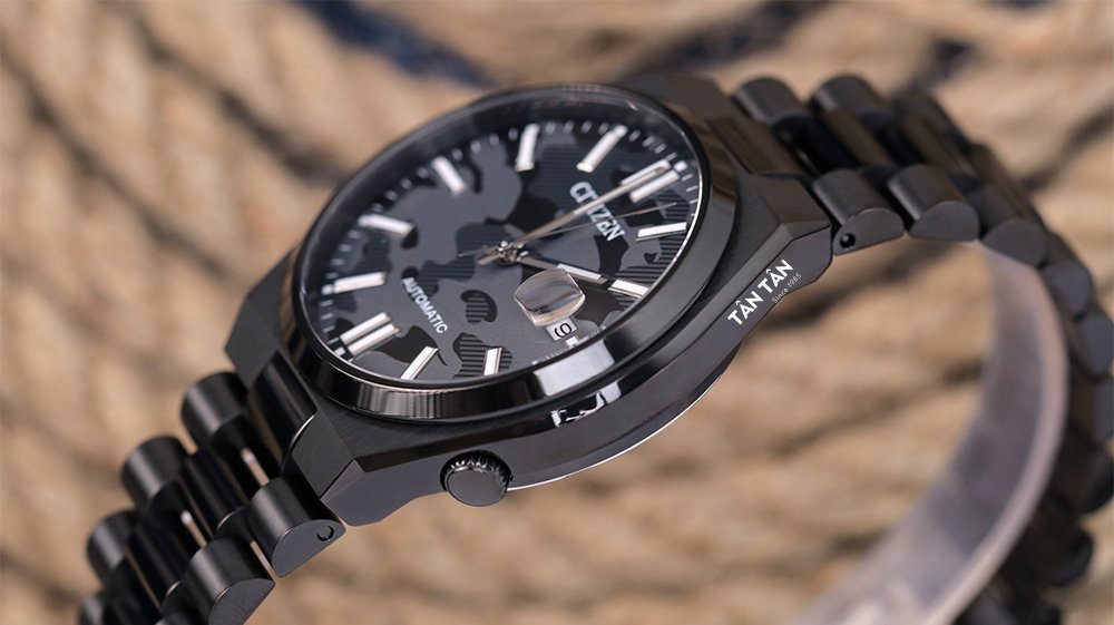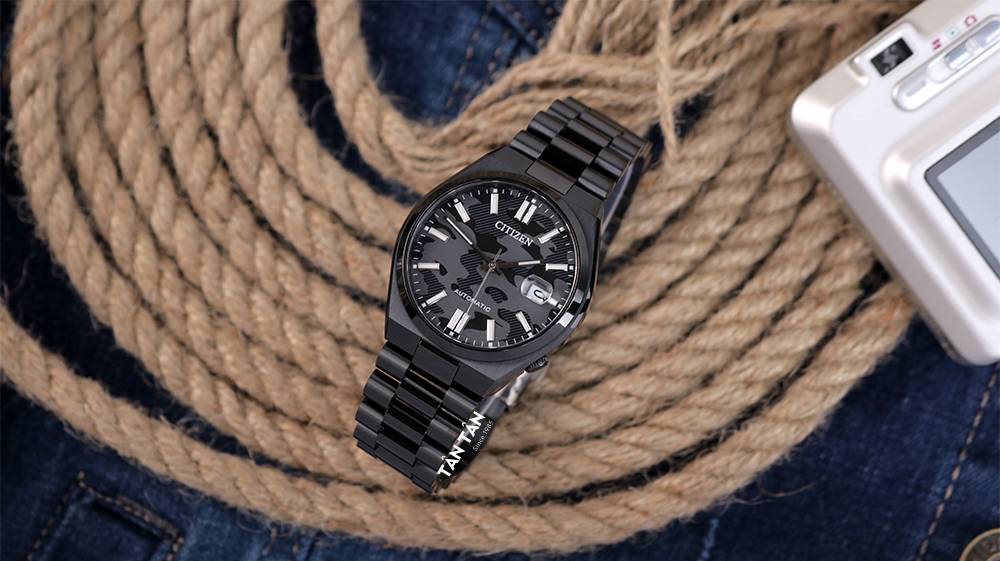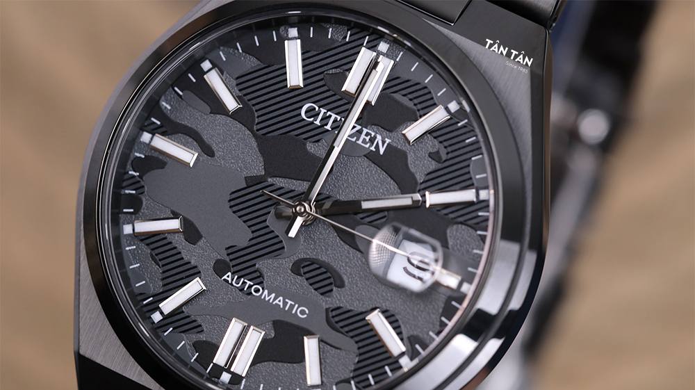 Nằm trong bộ sưu tập Mechanical đình đám, mẫu đồng hồ Citizen NJ0155-87E là mẫu đồng hồ thiết kế độc đáo với tông đen hoàn thiện tinh xảo, thu hút. Sản phẩm có thiết kế đầy trẻ trung, với mặt số phối phong cách “Camo” nhưng không kém phần lịch lãm, chạm đến trái tim của cánh mày râu khi lần đầu chạm mắt.