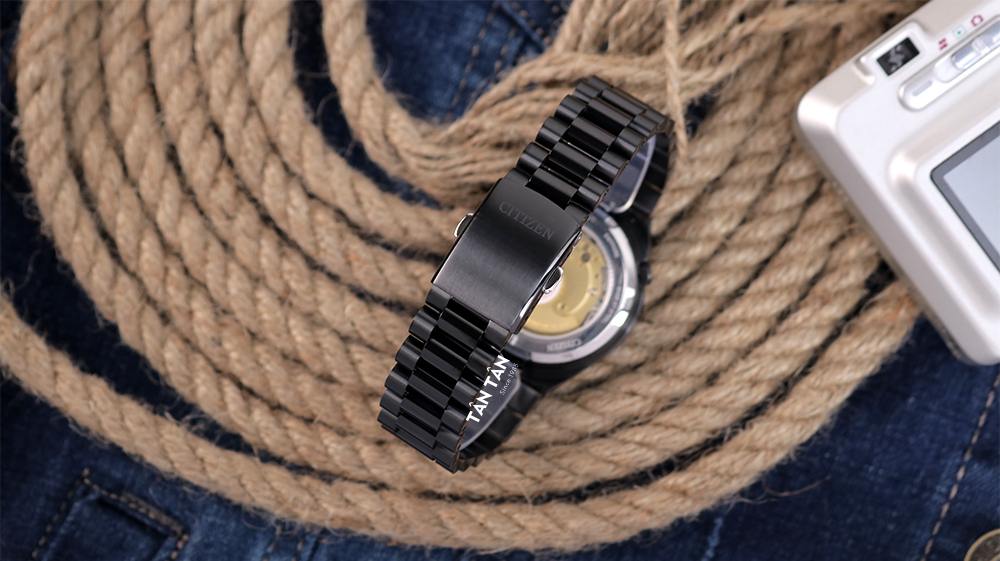 Sử dụng thiết kế dây President hoàn thiện phay xước hai bên với mắt giữa sáng bóng, kết hợp công nghệ mạ thẩm thấu ion đen giúp toàn bộ bộ dây của đồng hồ nam Citizen NJ0155-87E ẩn hiện nét mạnh mẽ nhưng vẫn giữ được vẻ ngoài tinh tế, lịch thiệp, càng toát lên vẻ sang trọng khi được đeo trên cổ tay cánh đàn ông và giúp cổ tay luôn thoáng mát. Với những liên kết dây bo cong, tỉ mỉ đến từng chi tiết, đây là một trong những thiết kế dây đẹp nhất từng có trên đồng hồ.