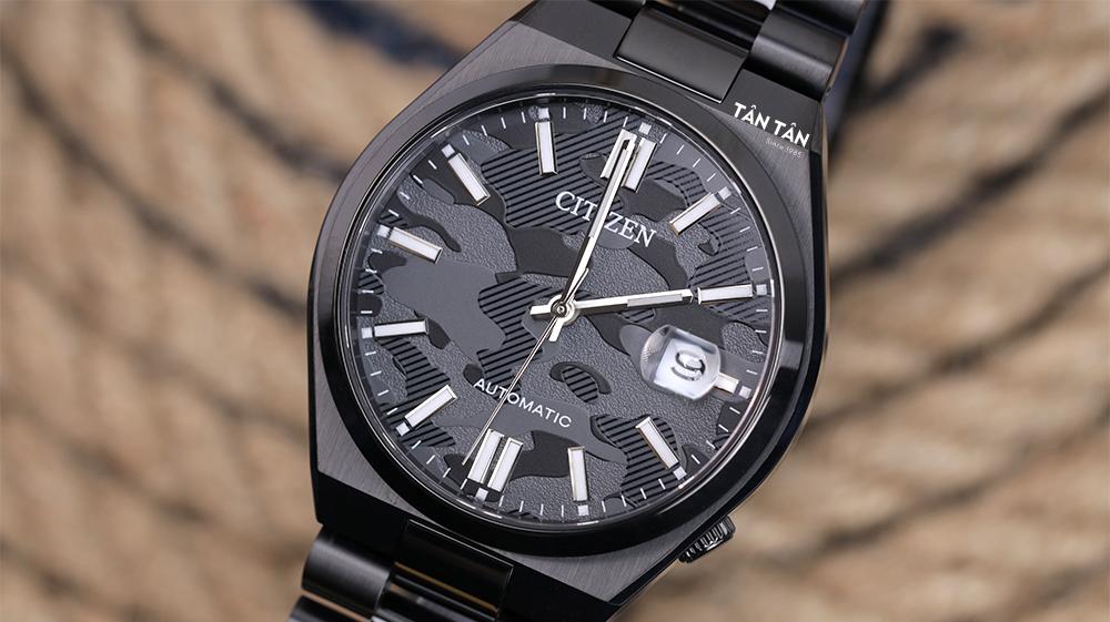 Khác với những mẫu đồng hồ trước đây, mặt số đồng hồ Citizen NJ0155-87E sử dụng tông màu đen cho tổng thể với họa tiết Camo lấy ý tưởng từ họa tiết quân đội ở mặt số, mang đến vẻ trẻ trung, năng động nhưng cũng không kém phần sang trọng.