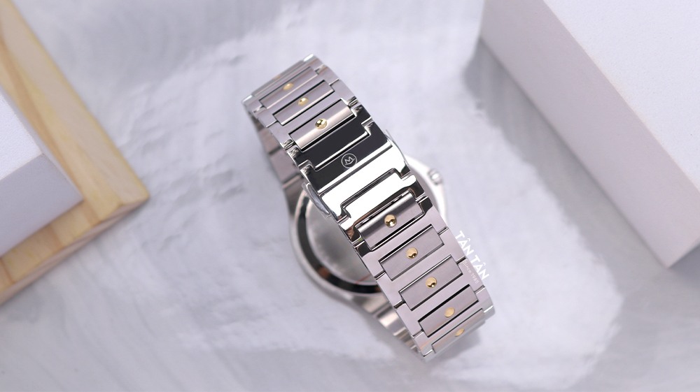 Kết hợp cùng dây đeo thép không gỉ kháng nước là khóa cân bằng chắc chắn, tiện lợi giúp đồng hồ luôn ôm chặt cổ tay các quý ông. Trên bề mặt khóa còn được khắc logo Movado gọn gàng làm tăng thêm sự tinh tế cho đồng hồ.