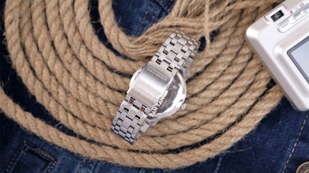 Đi kèm dây thép là khóa gập chắc chắn được khắc logo Citizen ở phần giữa khóa. Đây là loại khóa cài chuyên dụng cho đồng hồ Citizen dây kim loại giúp khách hàng, với nút bấm tiện lợi dễ dàng thao tác tháo - mở cũng như đảm bảo độ chắc chắn.