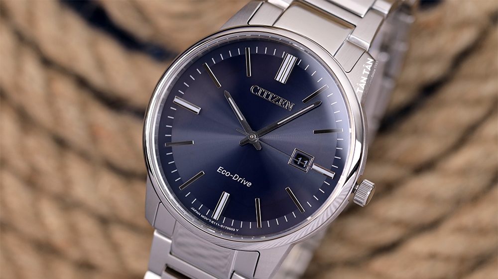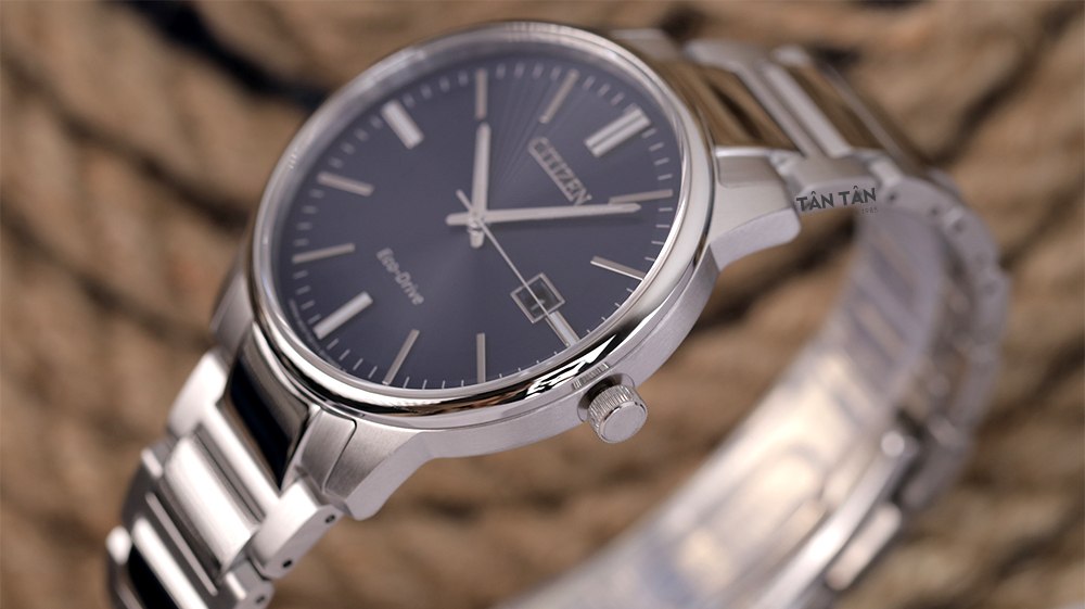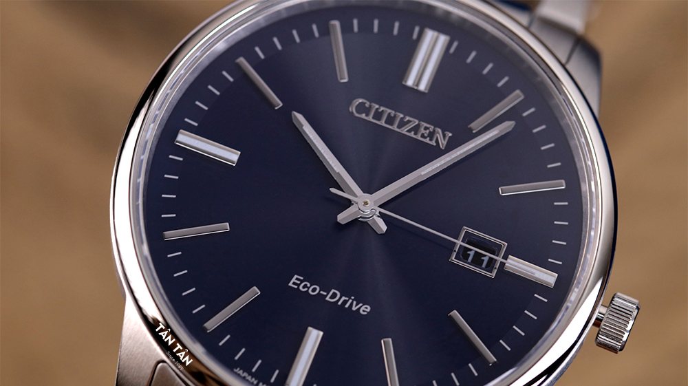 Tại góc 12 giờ là tên thương hiệu Citizen cao cấp, phía dưới góc 6 giờ là tên bộ máy Eco-drive độc quyền. Tại góc 3 giờ là lịch ngày được thiết kế gọn trong viền bằng thép sáng bóng. Ngoài ra, kính sapphire cũng được trang bị để bảo vệ mặt số đồng hồ khỏi các tác động bên ngoài nhờ có độ chịu lực vô cùng cao.