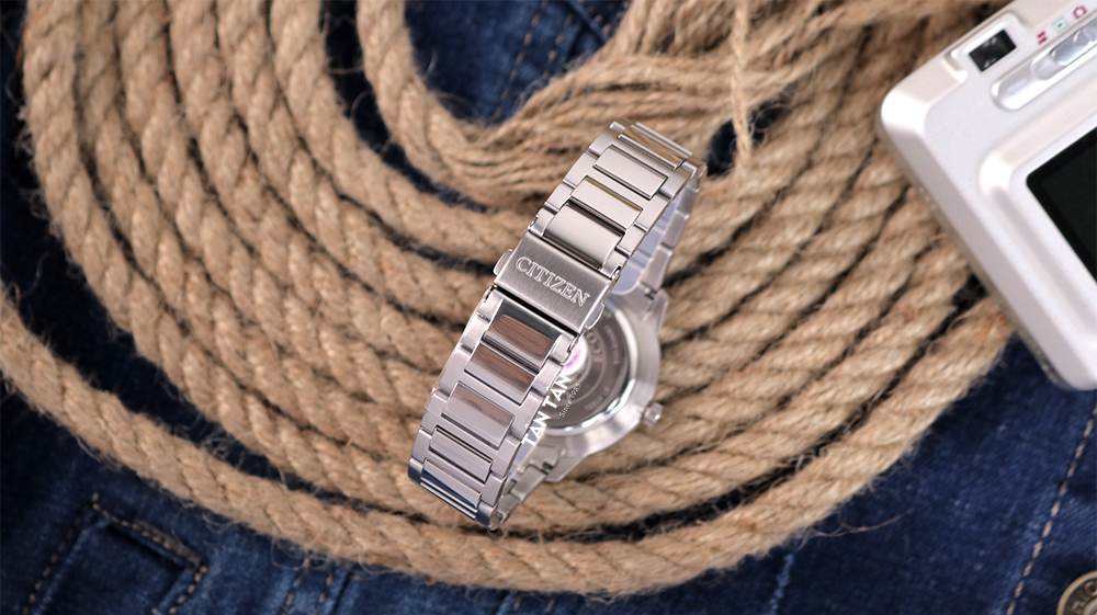 Tương tự hầu hết những thiết kế Citizen dây kim loại, Citizen BM7521-85L được trang bị loại dây thép không gỉ 316L nguyên khối có độ chắc chắn cao, được thiết kế kiểu dáng H-link quen thuộc. Toàn bộ phần dây đồng hồ được đánh thớ mờ, có tác dụng hạn chế nhìn thấy các vết trầy xước nhẹ, với phần mắt giữa sáng bóng mang đến độ bắt sáng cao cùng nét thẩm mỹ hiện đại, thời trang hơn.