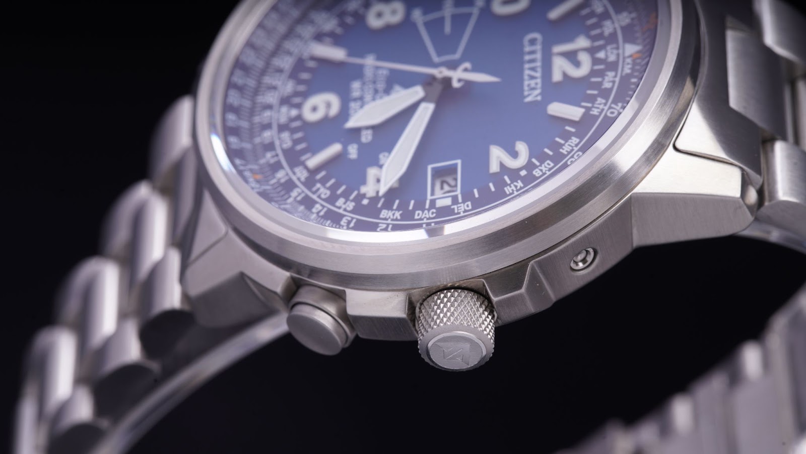 Các chức năng của đồng hồ Citizen CB0240-88L cũng được sắp xếp rất khoa học. Bên ngoài là thước trượt Loga giúp tính toán và chuyển đổi nhanh các đơn vị như vận tốc, thời gian. Chức năng này được điều chỉnh bằng nút screw-down ở góc 8h, với vòng ngoài thước trượt xoay được. Tiếp theo là vòng thể hiện 26 múi giờ trên toàn thế giới của chức năng World-Time. Ô lịch ngày được đặt gọn gàng tại vị trí 3 giờ và góc 4-5 giờ là ký hiệu on-off của chức năng giờ mùa hè super time.