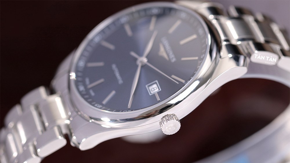 Thêm vào đó, Logo thương hiệu “Longines” sắc nét được đặt tại góc 12h, cùng tên bộ vận hành bằng bộ máy “Automatic” được đặt đối xứng phía dưới bộ kim khẳng định giá trị vượt thời gian của đồng hồ. Ô lịch ngày đặt gọn gàng và nổi bật tại vị trí 3h giúp người dùng dễ dàng quản lý lịch trình.