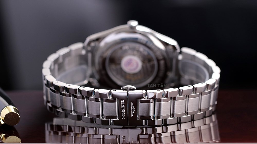 Bên cạnh đó, dây đeo của Longines L2.893.4.92.6 được hoàn thiện từ chất liệu thép không gỉ cao cấp, vật liệu làm nên những mẫu Longines dây kim loại trứ danh. Các mắt kim loại bạc được đánh bóng hoàn hảo, đan xen liên kết giữa chải phay xước được tạo hiệu ứng giống phối demi chuyển sáng cực kỳ bắt mắt, lộng lẫy và tôn da khi đeo lên tay. Đi kèm là khóa đôi được thiết kế chốt gấp ba lần an toàn và mở theo cơ chế đẩy tiện lợi, tháo ra và lắp vào dễ dàng, giúp các quý cô dễ dàng tháo ra và lắp vào trong quá trình sử dụng.