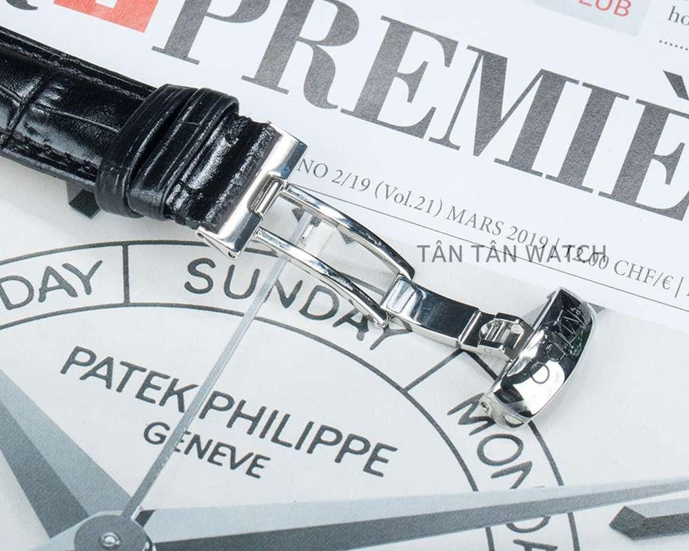 Kết hợp với bộ vỏ thép mạ demi màu vàng gold là dây da mềm nhẹ màu đen đi kèm khóa cân bằng hạn chế gãy dây