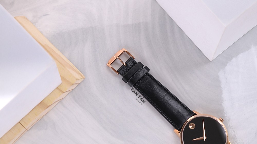 Bên cạnh đó, Movado 0607272 được trang bị dây da bê cao cấp chính hãng có độ dẻo dai và chịu nước cực cao, thoáng khí, không gây bí da khi đeo lên tay. Đặc biệt sử dụng 100% da thật để làm dây đeo nên rất nhẹ, bền màu và không dễ bong tróc. Với các đường chỉ may cùng màu đen trên bề mặt dây tạo nên sự chắc chắn và tinh tế hơn. Đi kèm với dây da là khóa cài đơn giản được mạ PVD màu vàng hồng ton sur ton với bộ vỏ đồng hồ, dễ dàng đeo vào-tháo ra giúp ôm trọn cổ tay mang lại cảm giác mềm mại, an toàn tuyệt đối khi đeo trên tay.
