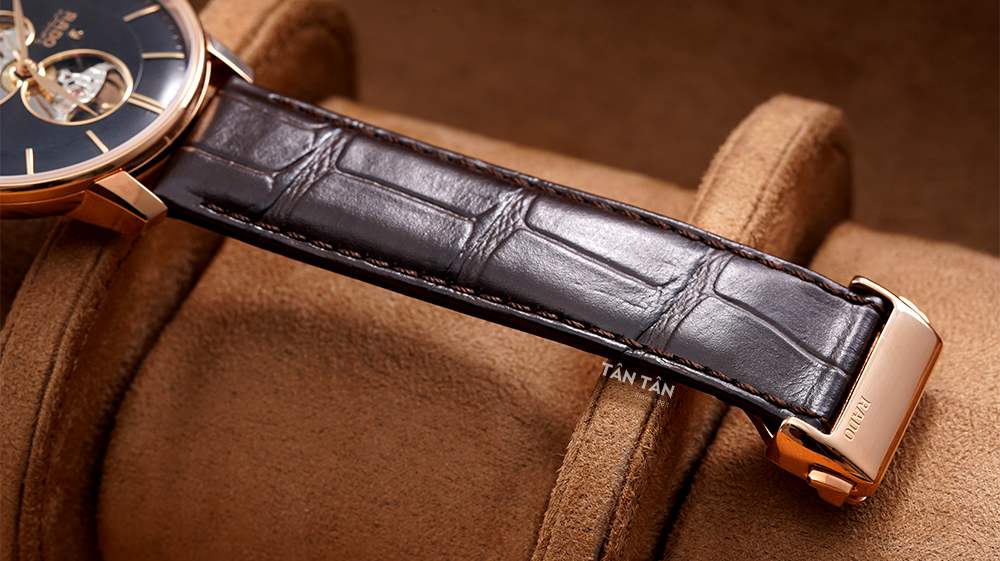 ✓ Dây da nâu bóng dập vân sang trọng được hoàn thiện tỉ mỉ.
