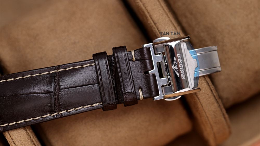 Dây da cao cấp thuộc nâu đen lịch lãm của đồng hồ Longines L2.793.4.77.3
