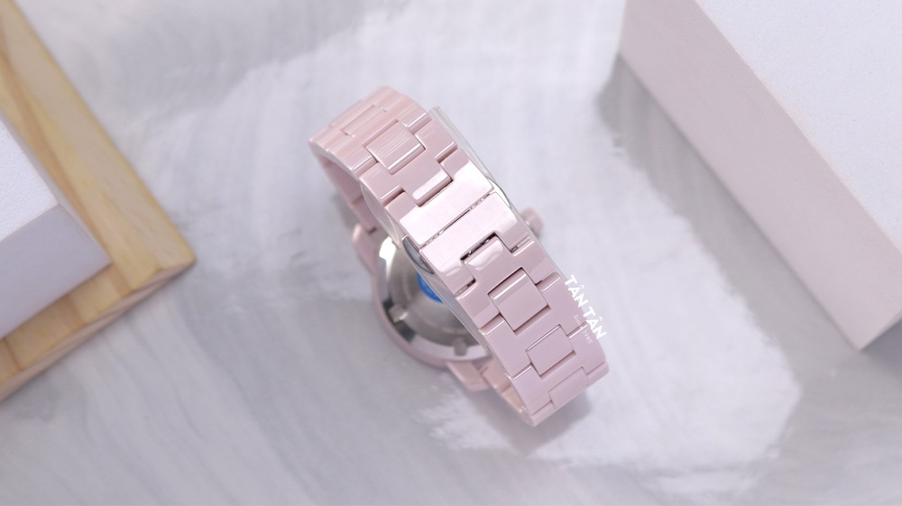 Bộ dây H-link bằng ceramic màu hồng bóng sang trọng với khóa gập cân bằng gọn gàng, tiện lợi