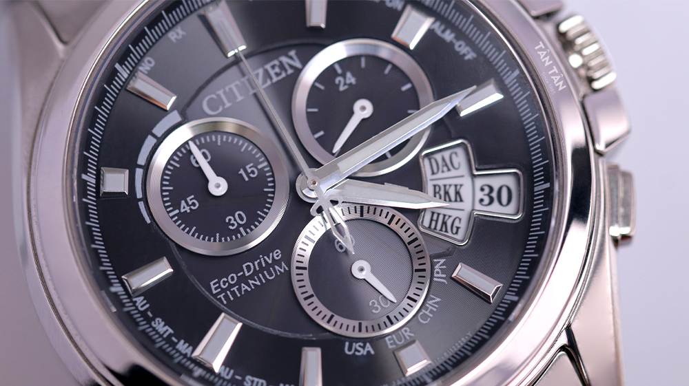 ✓ Bộ vỏ và dây đeo Super Titanium độc quyền của Citizen.