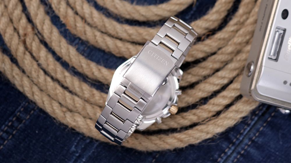 Để có thể hài hòa với bộ vỏ, hãng đã trang bị cho Citizen AN8204-59X dây đeo thép không gỉ thiết kế 3 liên kết chắc chắn. Toàn bộ bề mặt dây được hoàn thiện phay xước mang đến màu trắng bạc đặc trưng, hạn chế trầy xước góp phần tăng tính thẩm mỹ, demi màu vàng hồng ở viền các mắt dây liên kết giữa cho vẻ đẹp mạnh mẽ nhưng không kém phần lịch lãm, sang trọng.