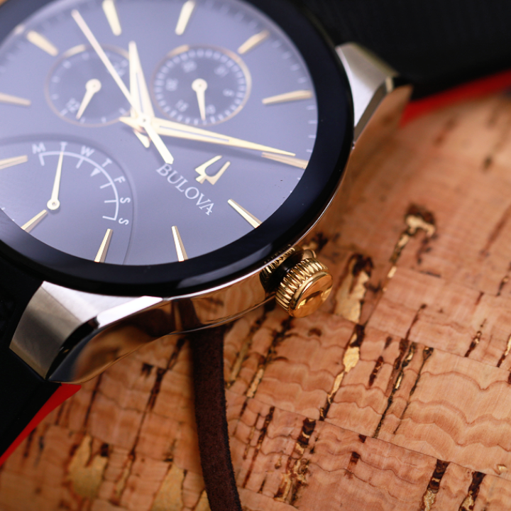 Đồng Hồ Bulova 98C138 thuộc BST Futuro nổi bật với những thiết kế thể thao, khỏe khoắn cực kỳ thích hợp với những người có phong cách trẻ trung, năng động nhưng vẫn muốn giữ vẻ lịch sự, sang trọng. Mẫu đồng hồ có thiết kế 6 kim rất độc đáo và tiện dụng với các kim chỉ thứ - ngày - tháng phục vụ cho cuộc sống hằng ngày rất tốt. Ngoài ra thiết kế cũng rất mạnh mẽ với vỏ bằng thép không gỉ mạ PVD ion đen ở vành vỏ và PVD vàng Gold ở kim và núm vặn làm nên một phối màu Đen - Vàng vừa cứng cỏi vừa sang trọng. Đồng Hồ Bulova 98C138 được phân phối độc quyền tại Tân Tân tại hệ thống showroom ở trung tâm Q1 TP.HCM. Nếu quý khách ở xa Tân Tân có dịch vụ giao hàng toàn quốc hoàn toàn miễn phí. Quý khách kiểm tra hàng trước khi thanh toán.