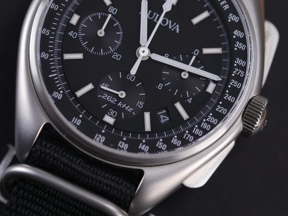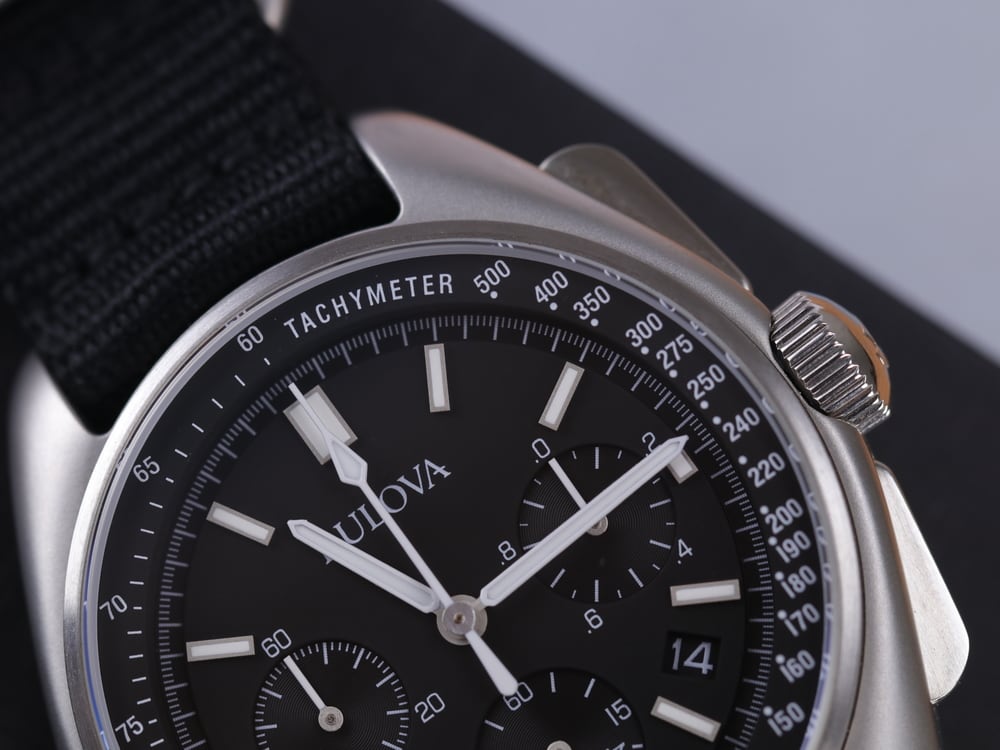 Đặc biệt, Bulova 96B251 thuộc dòng Bulova Tachymeter nên viền ngoài mặt số còn được trang bị thang đo vận tốc Tachymeter, dùng để đo tốc độ dựa trên thời gian trôi qua trên một quãng đường cố định. Ở phiên bản cũ, đây là thông số rất quan trọng để các phi hành gia thám hiểm Mặt Trăng tính toán chính xác khi nào phải quay trở về tàu.