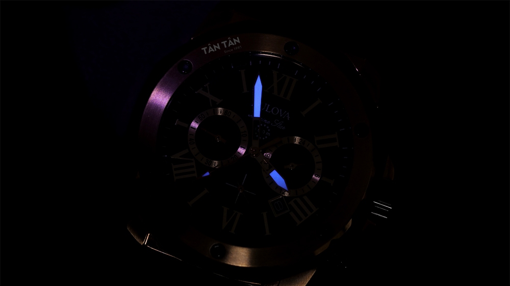 Phủ dạ quang tiện dụng ở bộ kim chính hỗ trợ xem giờ trong bóng tối
