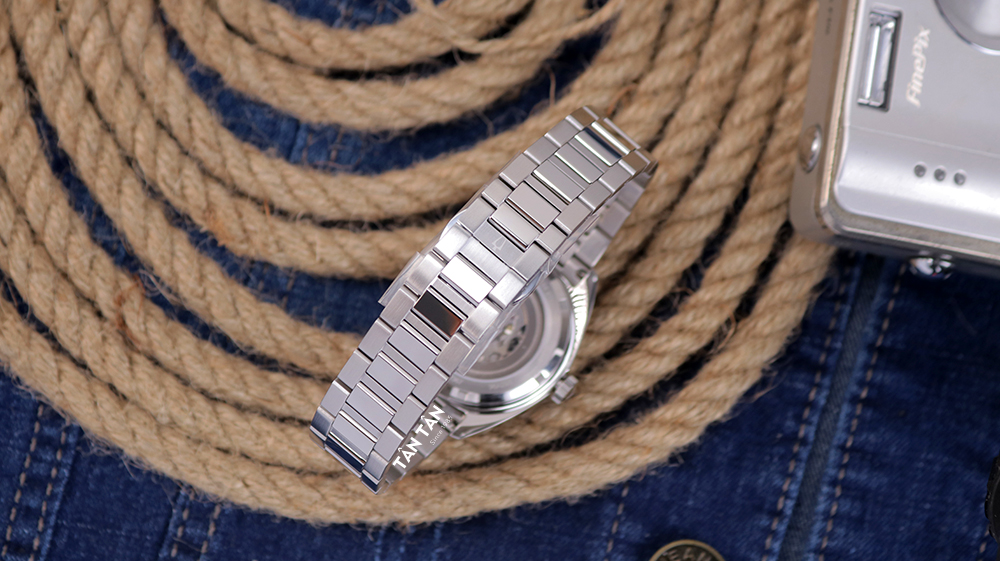 Bộ vỏ 41mm với khung nối liền phần lug nối dây tạo ra dáng thùng thời thượng và sành điệu, phù hợp với cổ tay trung bình từ 16cm trở lên của nam giới Việt. Dây đeo là sự liên kết các mắt xích dạng H-link nối liền mạch chắc chắn, đi kèm khóa bướm tiện lợi dễ thao tác tháo ra - đeo vào, sẽ mang đến những trải nghiệm lên tay thoải mái, nhưng cực chắc tay. Với bề mặt dây đánh xước với các sắc vân đậm nhạt khác nhau để tạo độ chuyển sáng và toát lên ánh bạc sang trọng, các chàng có thể tự tin diện trong các hoạt động thường nhật hay party, meeting đều rất phù hợp.
