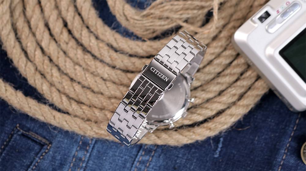 Dây đeo của đồng hồ nam Citizen AN3610-71E được liên kết với nhau bởi các mắt nhỏ đầy mạnh mẽ và được đánh bóng xen kẽ đánh xước phay bắt mắt. Cách hoàn thiện này tạo độ hiệu ứng chuyển sáng mượt mà và tăng thêm phần trẻ trung cho dây đeo.