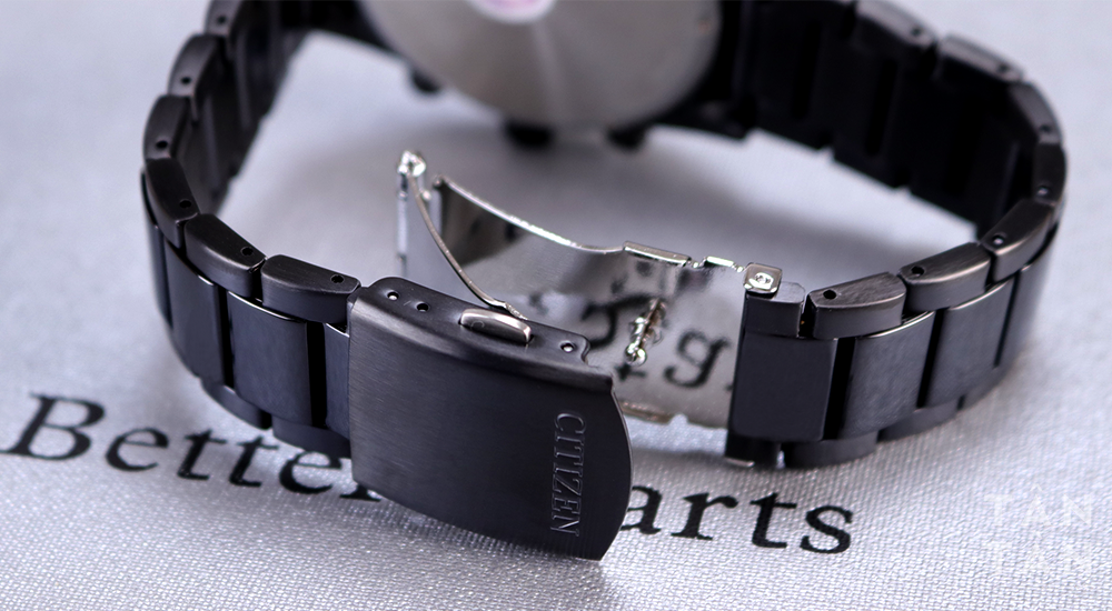 Tương tự những mẫu đồng hồ nam dây kim loại thương hiệu Citizen khác, Citizen AN8195-58E sở hữu bộ dây thép không gỉ cứng cáp, hạn chế ăn mòn. Cũng như bộ vỏ, dây đeo của Citizen AN8195-58E cũng được mạ ion đen giúp màu sắc bền bỉ theo thời gian.