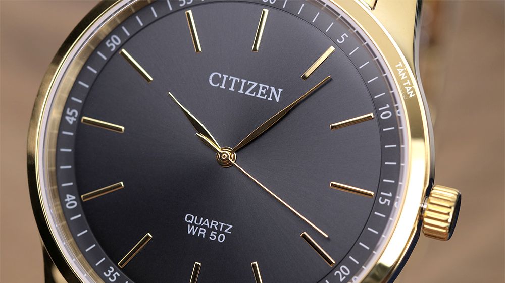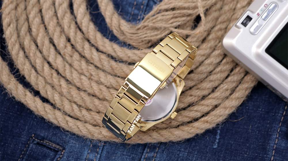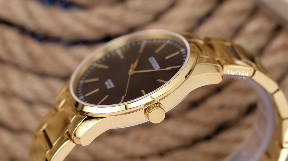 Citizen đặt trọng tâm vào ba yếu tố: mỏng - nhẹ - bền để tô đậm sự đơn giản và nét sang trọng, thanh lịch của chiếc đồng hồ này. Phần dây đồng hồ được hoàn thiện bằng thép với thiết kế 3 mắt được mạ PVD màu vàng gold mang đến diện mạo mới tăng thêm tính thời trang, vương giả và nam tính cho phái mạnh, và rất dễ phối đồ.