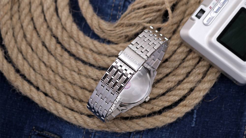 Khi nghĩ đến dây kim loại, đa số người dùng sẽ tưởng tượng một khối dây khá cứng cáp. Tuy nhiên, nắm bắt được tâm lý đó, ở Citizen BI5000-87E được trang bị dây đeo bằng thép không gỉ với những mắt đánh bóng và đánh sớ mờ xen kẽ nhau tạo nên điểm nhấn. Bên cạnh đó, sự liên kết giữa những mắt dây nhỏ với nhau tạo cảm giác mềm mại và vô cùng tinh tế. Khoá đi kèm là khoá gập với nút bấm tiện lợi, logo Citizen dập chìm tinh tế và thể hiện đẳng cấp.