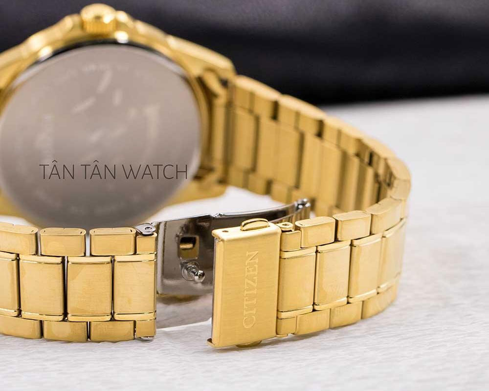mạ PVD màu vàng gold trên khung vỏ bo cong và dây đeo 3 liên kết của đồng hồ nam Citizen BI5042-52E được chế tác từ chất liệu thép không gỉ 316L cứng cáp trước mọi va đập và bền bỉ theo thời gian. Thiết kế dây đeo gồm các liên kết sáng bóng ở giữa với đường cắt dứt khoát cùng sớ mờ xung quanh càng tô điểm thêm sự phong trần đúng chuẩn một quý ông. Đi kèm theo là khóa gập nút bấm mang đến sự chắc chắn không bị bung ra khi vận động mạnh. Đồng hồ có đường kính vỏ là 39mm, độ dày vỏ 8mm phù hợp cho các chàng trai có cổ tay từ 16cm trở lên. Chiếc phụ kiện này phù hợp đồng hành cùng các chàng ở chốn văn phòng hay có thể góp mặt trong những buổi tiệc sang trọng.