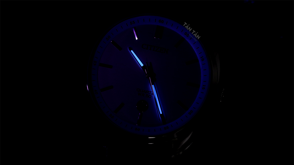 Phủ dạ quang tiện dụng ở bộ 2 kim chính, hỗ trợ xem thời gian trong điều kiện thiếu sáng