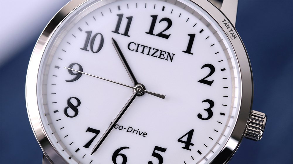 Citizen BJ6541-15A thu hút sự chú ý ngay từ ánh nhìn đầu tiên với tông màu trắng - bạc - đen phối đẹp mắt cùng với mặt số bo tròn màu trắng nhã nhặn và đặc biệt sang trọng. Các mốc giờ được hoàn thiện bằng số arab to rõ màu đen nổi bật. Thêm chi tiết kiến tạo nên linh hồn của chiếc đồng hồ chính là bộ kim dạng stick khá đơn giản nhưng lại vô cùng thời thượng, với kim giờ - kim phút sơn đen kết hợp kim giây dài gần chạm viền đi qua những nét đơn thanh mảnh trải đều trên vòng ngoài mặt số cho người dùng cái nhìn rõ ràng khi từng giây phút trôi qua.