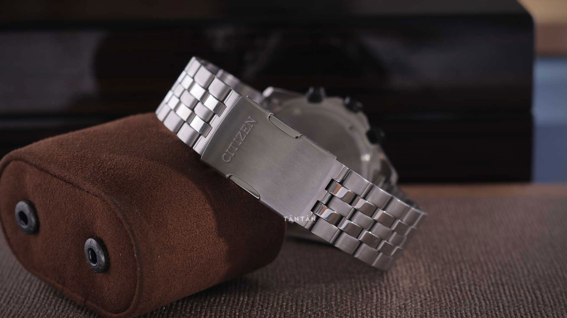 Khóa gập thông dụng trên các mẫu đồng hồ Citizen nam dây kim loại, kết hợp nút bấm thông minh với điểm mạnh là sự đơn giản, chắc chắn, cực kỳ ôm tay và không bị rơi khi vận động mạnh. Logo Citizen cũng được khắc chìm đầy tinh tế ở mặt trên khóa khẳng định chất lượng cao cấp của thương hiệu.