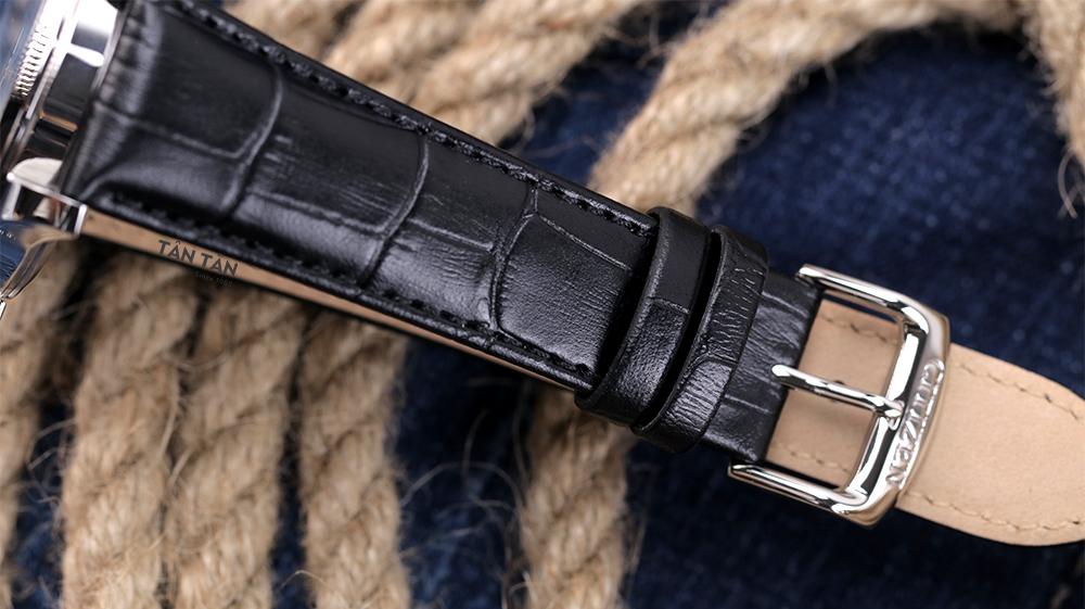 Với tiêu chí đặt chất lượng sản phẩm lên hàng đầu, Citizen luôn chú trọng về mọi chi tiết ở sản phẩm của mình, việc chọn dây da đi kèm để tôn lên nét lịch lãm, thanh lịch là điều vô cùng hợp lý. Citizen BM7460-11E được ưu ái phần dây da cao cấp thuộc đen, dập vân cá sấu với độ bền cao, mềm nhẹ mang lại sự thoải mái khi đeo. Dây đeo hai lớp với lớp trong mềm mại được may thủ công rất cẩn thận, tỉ mỉ với đường chỉ tệp màu dọc viền dây làm cho chiếc đồng hồ thêm hút mắt và tăng độ bền.
