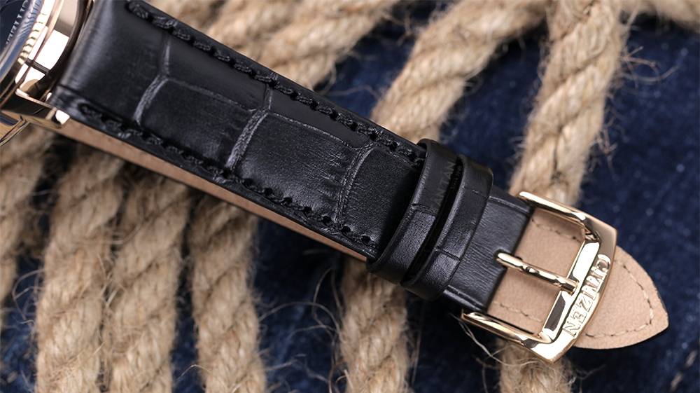 Với tiêu chí đặt chất lượng sản phẩm lên hàng đầu, Citizen luôn chú trọng về mọi chi tiết ở sản phẩm của mình, việc chọn dây da đi kèm để tôn lên nét lịch lãm, thanh lịch là điều vô cùng hợp lý. Citizen BM7462-15E được ưu ái phần dây da cao cấp thuộc đen, dập vân cá sấu với độ bền cao, mềm nhẹ mang lại sự thoải mái khi đeo. Dây đeo hai lớp với lớp trong mềm mại được may thủ công rất cẩn thận, tỉ mỉ với đường chỉ tệp màu dọc viền dây làm cho chiếc đồng hồ thêm hút mắt và tăng độ bền.