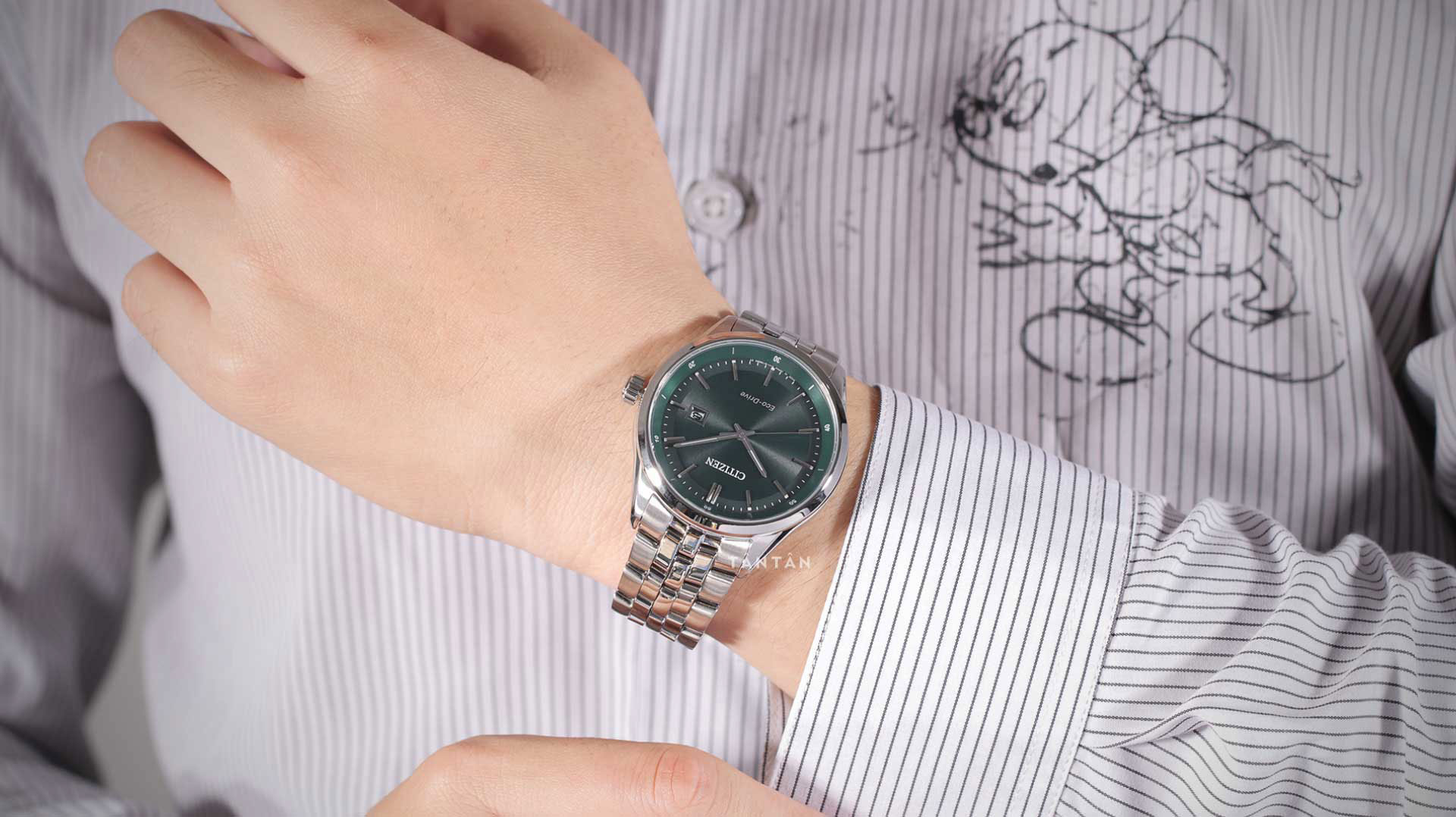 Citizen BM7569-89X đã thu hút phái mạnh bởi vẻ ngoài đơn giản sang trọng, lịch thiệp nhưng không kém phần mạnh mẽ, nam tính. Mặt số với thiết kế tròn truyền thống cùng sự kết hợp của màu xanh lá trẻ trung, bắt kịp xu hướng thời đại. Với thiết kế này, sẽ rất phù hợp khi mang trên tay cùng trang phục vest, áo sơ mi quần tây hoặc quần sooc kaki kèm áo polo lịch lãm.