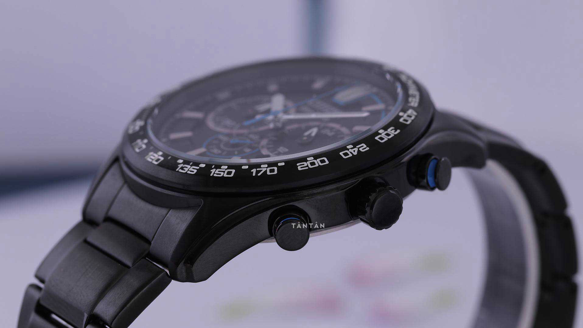 Ngoài ra, điểm nhấn của đồng hồ nam Citizen CA4485-85E còn nằm ở lớp viền bezel màu đen mạnh mẽ, điểm xuyết trên đó chính là vạch đo Tachymeter thường thấy trên những mẫu đồng hồ chức năng chuyên dùng để đo tốc độ, rất phù hợp cho các hoạt động thể thao.
