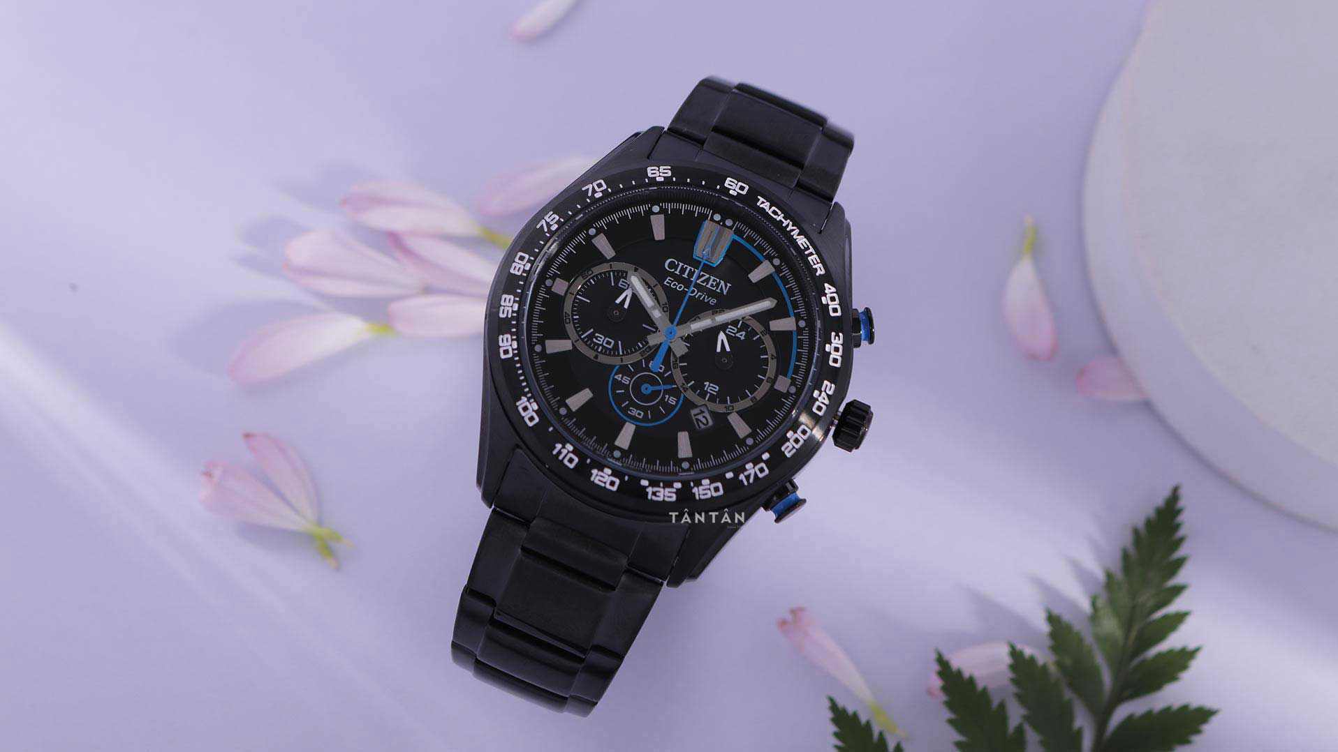 Ngay từ ánh nhìn đầu tiên, Citizen CA4485-85E đã tạo sự thu hút bởi vẻ ngoài hiện đại và đậm tính thể thao khi mạ thẩm thấu ion đen toàn bộ. Người nhìn dễ ấn tượng bởi các chi tiết to bản nổi bật cùng với mặt số hiện đại có bố cục được sắp xếp bắt mắt.