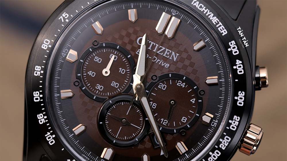 Citizen Eco-Drive CA4534-81X sở hữu mặt số màu nâu cafe bo tròn đậm chất thể thao có thêm 3 mặt số phụ cùng các nút bấm giờ Chronograph tiện lợi kết hợp với màu đen của bộ vỏ đến dây đeo, tạo nên một chiếc đồng hồ vừa mang hơi hướng trầm tính vừa xen lẫn chút hiện đại đầy lôi cuốn. Chiếc đồng hồ hiệu Citizen này xứng đáng được săn đón bởi các quý ông yêu thích sự năng động nhưng đặc biệt tôn lên nét phong trần, lịch lãm.