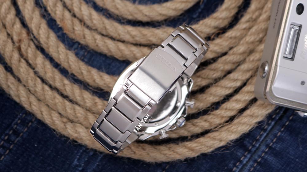 Bên cạnh đó, Citizen CA4560-81E được trang bị dây đeo thép không gỉ nguyên khối với những tính năng nổi trội mà các loại chất liệu khác không có đó là độ bền, độ cứng cao hơn giúp chống trầy xước khi va chạm. Phần bề mặt dây được làm phẳng với những mắt dây to nối với nhau chắc chắn. Mặt trước của bảng dây hoàn thiện với phay xước, khi nghiêng đồng hồ theo góc sáng bộ dây sẽ phản chiếu lại ánh sáng rất đẹp mắt. Thêm vào đó, các mắt dây ở liên kết giữa được đánh bóng hai bên tạo điểm nhấn giúp dây đeo thẩm mỹ và thời trang hơn. Sử dụng khóa gập tích hợp nút bấm tiện lợi đi kèm dây đeo giúp cố định đồng hồ không bị dịch chuyển khỏi vị trí ban đầu trên cổ tay tạo cảm giác chắc chắn ôm trọn cổ tay giúp cho người đeo tự tin vận động thoải mái.