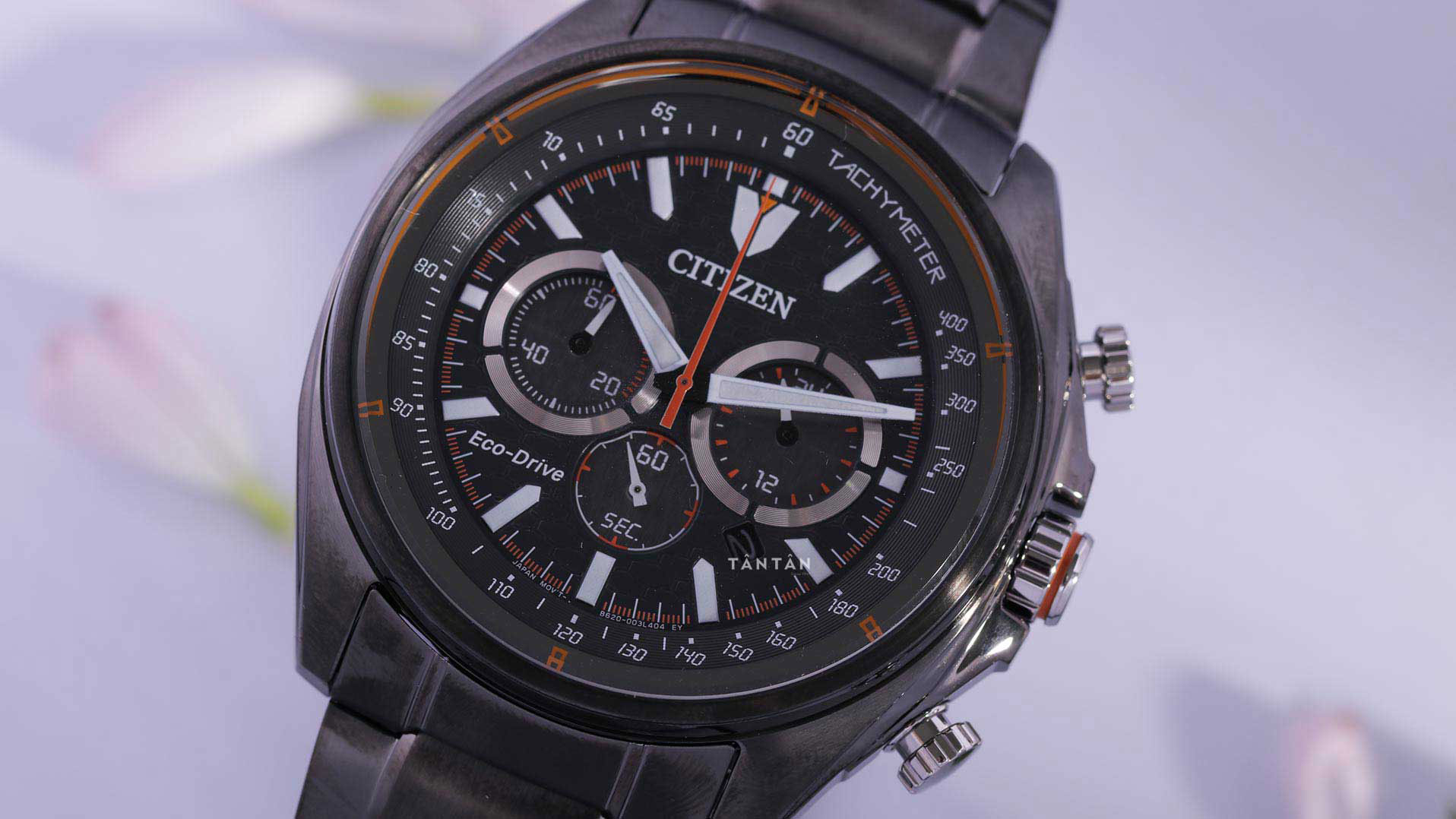 Hơn nữa, chiếc Citizen CA4567-82H được trang bị thêm tính năng “Đo tốc độ” (Tachymeter) tuyệt vời nằm trên lòng ngoài với các vòng tròn đồng tâm như những đường đua độc đáo. Cho những ai còn xa lạ với tính năng này thì Tachymeter là chức năng dùng để đo tốc độ dựa trên thời gian trôi qua trên một quãng đường cố định (1km hoặc 1 dặm). Kết quả tính toán của cơ chế này được đánh dấu trên vòng trên vòng bezel của mặt đồng hồ. Chức năng Tachymeter time đo rất chính xác với thời gian vật thể chuyển động từ 7.2 giây đến 60 giây.