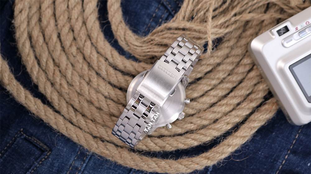Citizen CA7060-88L sở hữu bộ dây thép không gỉ đồng điệu với bộ vỏ. Dây đeo thiết kế 5 mắt liên kết chắc chắn xen kẽ đánh bóng và phay xước tạo điểm nhấn, mang đến nét thẩm mỹ hiện đại và hợp thời trang hơn. Đi kèm với đồng hồ Citizen dây kim loại là khóa gập chắc chắn với nút bấm tiện lợi dễ dàng đeo vào tháo ra, cố định trên cổ tay không bung trong quá trình vận động mạnh.