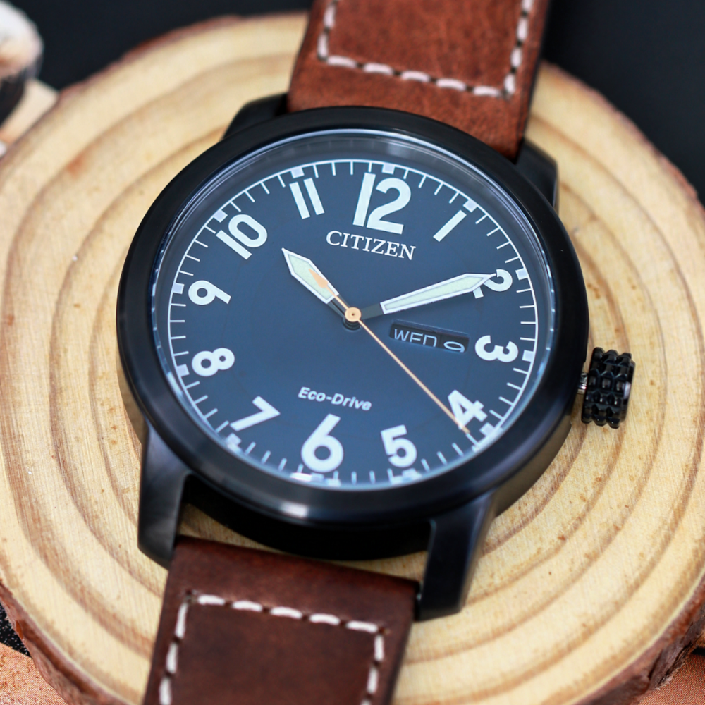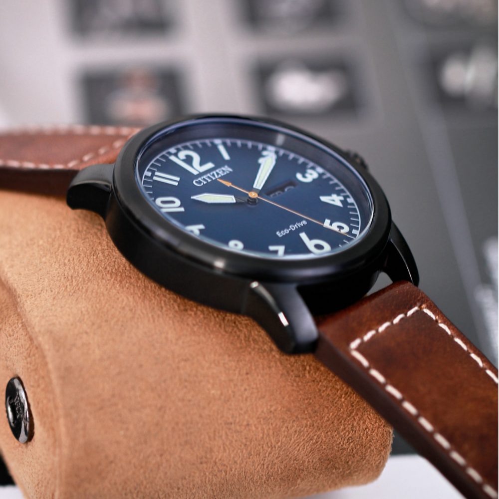 Trên nền mặt số là các cọc số ả rập màu trắng được thiết kế dạng số to rõ làm nổi bật và hài hòa với tổng thể. Với logo Citizen và biểu tượng bộ máy độc quyền được đặt tại vị trí 12h và 6h mang đậm phong cách thương hiệu. Ô lịch hiển thị lịch thứ và ngày được đặt tại vị trí 3h thuận mắt người nhìn, giúp các chàng trai dễ dàng quản lý thời gian và sắp xếp công việc đúng thời hạn.