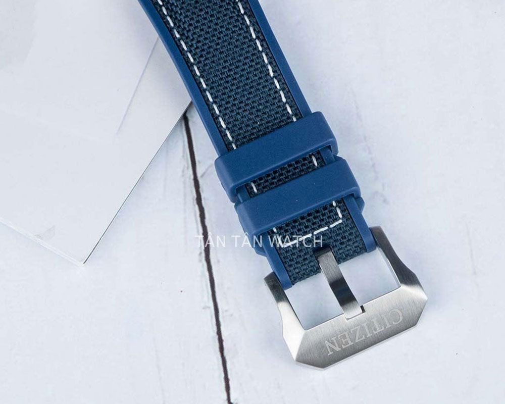 Citizen BJ7100-15L mang phong cách năng động, mạnh mẽ, chiếc đồng hồ nằm trong BST Citizen Promaster nổi tiếng dành cho những chàng trai có tinh thần khám phá chuyên nghiệp. Với màu sắc chủ đạo là màu xanh dương và dây đeo được làm bằng vải nato kết hợp cao su bền nhẹ, đây là thiết kế cực kỳ hiếm gặp và gần như chưa từng được thấy trên bất kỳ mẫu đồng hồ nào khác.