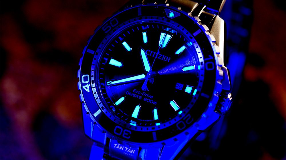 Điểm đắt giá của Citizen BN0190-82E chính là toàn bộ bộ kim và cọc số đều được phủ dạ quang, thuận tiện cho việc quan sát các chỉ số khi người dùng đang lặn dưới biển sâu hoặc đang hoạt động trong điều kiện thiếu ánh sáng.