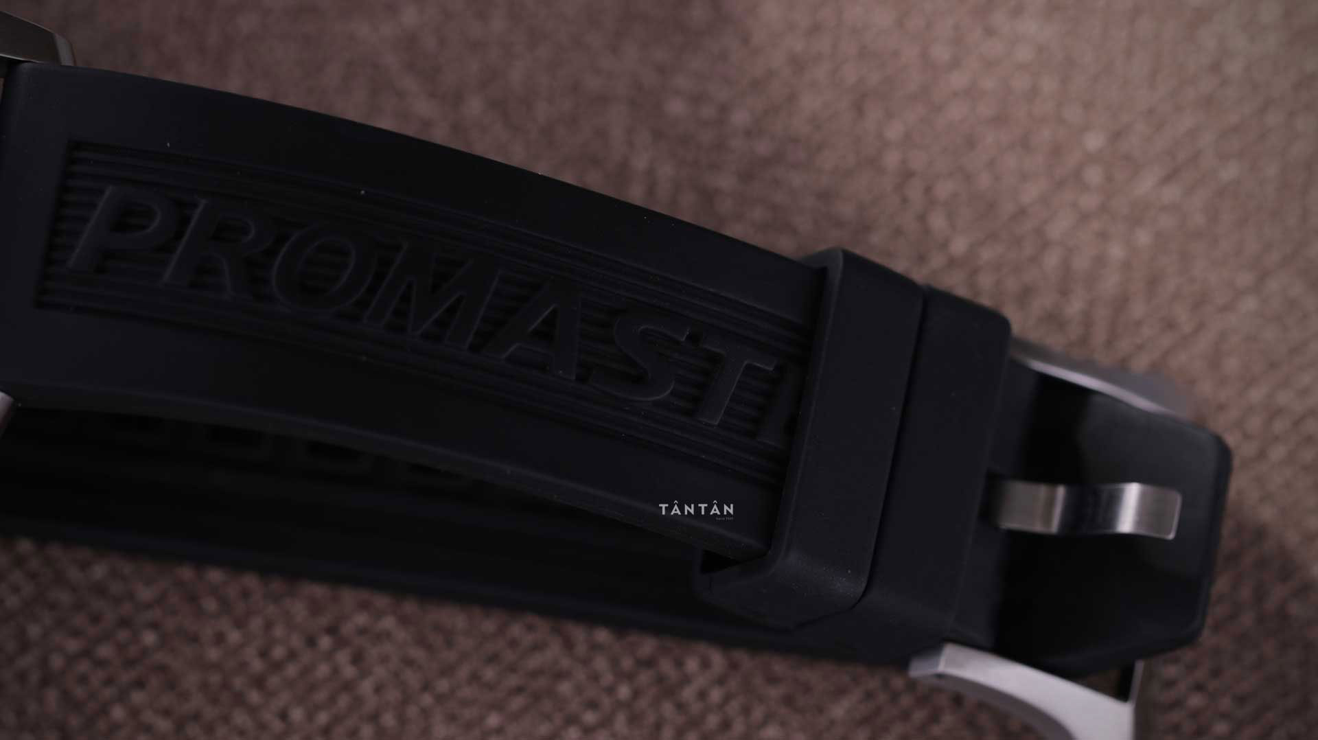 Dây đồng hồ mang sắc đen ton-sur-ton với mặt số và được thiết kế to bản để tạo sự mạnh mẽ và nam tính đặc trưng. Đơn giản nhưng không đơn điệu, dây đeo còn được khắc họa tiết sọc dọc đầy ấn tượng, qua đó làm nổi bật biểu tượng Promaster dập nổi công phu.
