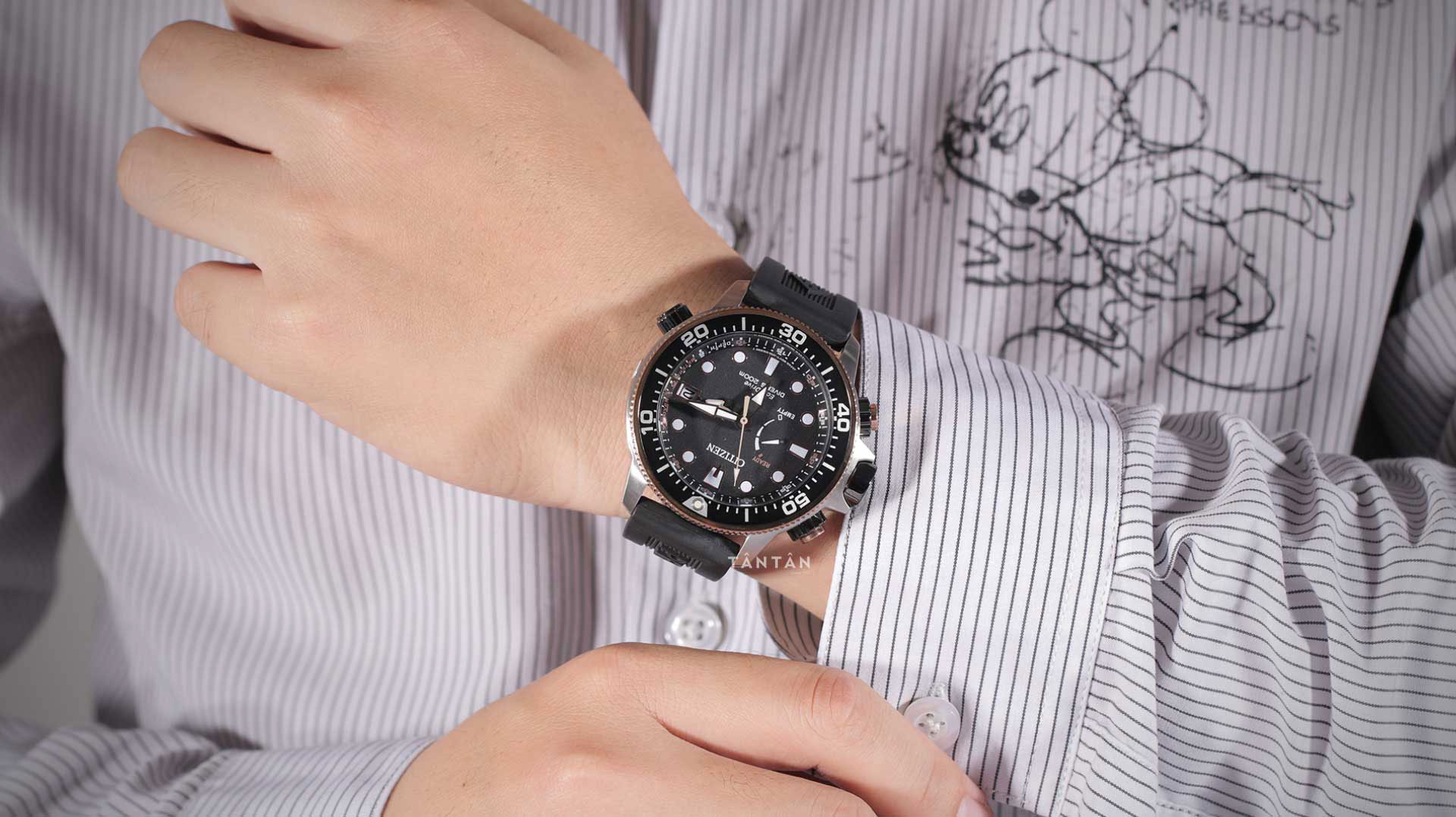 Với tổng thể thiết kế thể thao chuyên dụng vô cùng phù hợp với các hoạt động chuyên nghiệp. Có thể sử dụng chiếc đồng hồ này khi tham gia các hoạt động thể thao dưới nước, luyện tập hoặc có thể mang đi chơi, đi làm trong những outfit bình thường đều toát lên phong thái trẻ trung năng động của những chàng trai hiện đại. Đặc biệt, khi mua đồng hồ Citizen Eco-Drive tại Tân Tân Watch, các bạn sẽ nhận được chính sách bảo hành lên đến 5 năm (bao gồm 1 năm quốc tế và 4 năm tại Tân Tân).