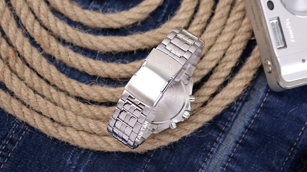 Bộ dây đeo được hoàn thiện từ 5 liên kết mạch lạc cho cảm giác chắc chắn kết hợp cùng kiểu dáng thanh lịch, nam tính càng toát lên vẻ sang trọng, đẳng cấp vốn có của một chiếc đồng hồ dành cho nam giới. bề mặt dây được Citizen hoàn thiện bởi kỹ thuật đánh bóng và phay xước xen kẽ đầy tính thẩm mỹ và hiện đại, liền lạc với nhau bởi khóa gập chắc chắn.