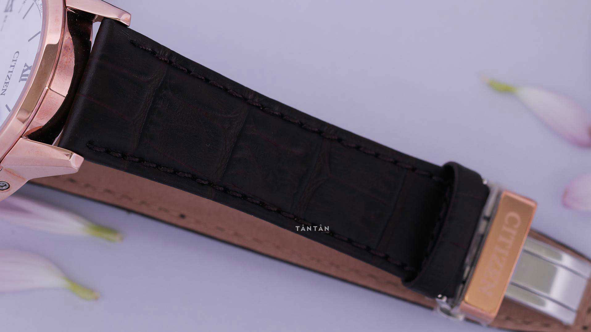 Đồng hồ Citizen CB0153-13A mang đậm phong cách thời trang lịch lãm, sang trọng. Sự kết hợp giữa màu trắng của mặt số, màu vàng hồng của bộ vỏ và sắc nâu của dây da tạo nên một sự kết hợp thanh lịch trên cổ tay các chàng. Citizen CB0152-16A có đường kính mặt số 42.7mm, dày 9.9mm cực kỳ phù hợp với các chàng trai có cổ tay từ 16,5cm trở lên. Mẫu đồng hồ Citizen này có độ chịu nước lên đến WR100 (tương đương áp suất ở độ sâu 100m nước) giúp các chàng trai có thể bơi lội, hoạt động dưới nước một khoảng thời gian dài mà không ảnh hưởng đến đồng hồ.