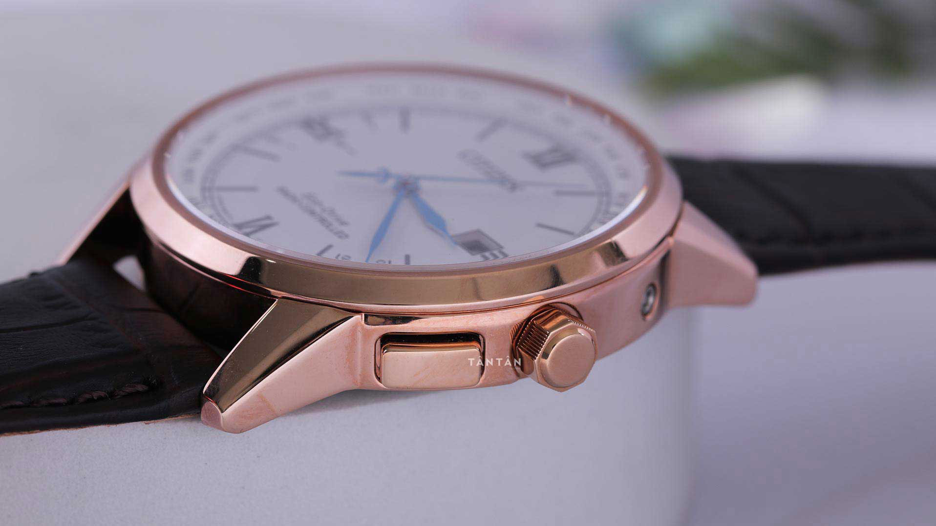 Mang trong mình một nét văn hoá đậm chất Nhật Bản về sự cẩn thận và đúng giờ, Citizen CB0152-16A là mẫu đồng hồ sở hữu bộ máy cập nhật giờ theo trạm phát sóng vô tuyến Radio-Controlled vô cùng chính xác và tiện lợi. Đồng hồ sở hữu thiết kế sang trọng với bộ vỏ thép màu vàng hồng kết hợp dây da lịch lãm, hút mắt người nhìn. Không chỉ có thiết kế đẹp ở bên ngoài Citizen CB0152-16A còn được trang bị bộ máy Eco-Drive mạnh mẽ được tích hợp nhiều tính năng đặc biệt như: Cập nhật giờ theo trạm phát sóng radio, lịch vạn niên, xem giờ thế giới, cảnh báo sạc quá tải. Đây là một mẫu đồng hồ đa năng và rất tiện dụng đối với cuộc sống bận rộn thường ngày.