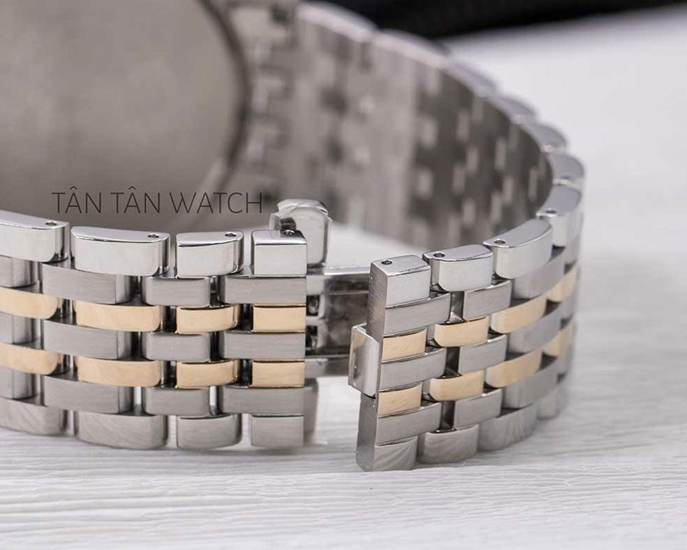 Dây đeo đồng hồ Citizen CB0156-66E dạng mắt xích nhỏ liên kết vô cùng chắc chắn, logo Citizen được dập chìm trên khoá vô cùng trang trọng giúp khẳng định thương hiệu. Dây đeo sử dụng chất liệu thép không gỉ với tông màu bạc tương thích với bộ vỏ với 2 liên kết mạ demi màu vàng hồng PVD. Tất cả các mắt xích đều được đánh phay xước thêm điểm nhấn và hạn chế nhìn thấy các vết trầy khi sử dụng, đồng thời phần dây đeo được làm với những liên kết nhỏ giúp cho dây đeo đồng hồ mềm mại và ôm tay hơn.