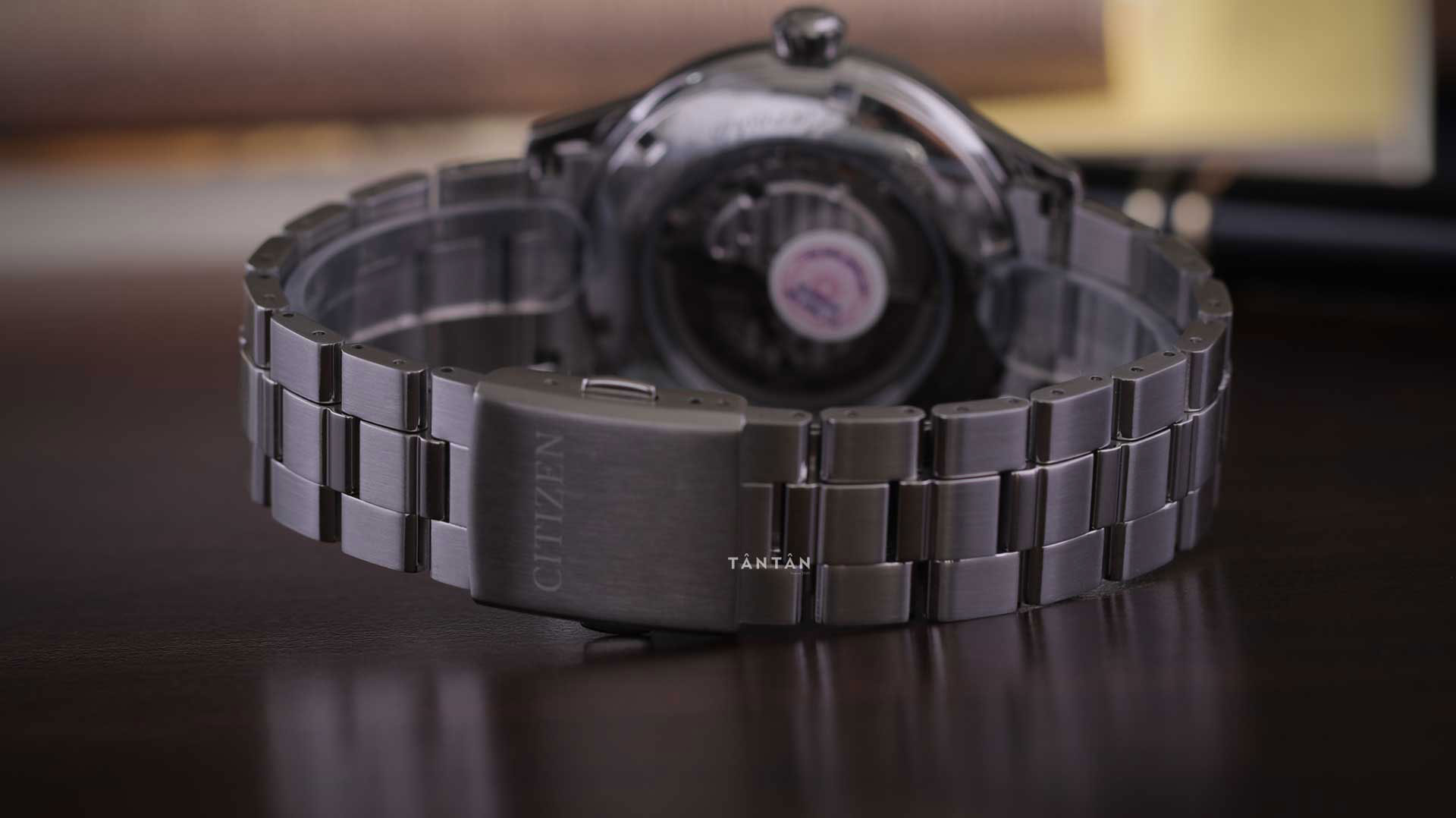 Đồng hồ Citizen Mechanical NK0008-85L được trang bị dây đeo thép không gỉ chắc chắn thiết kế 3 mắt truyền thống. Cùng theo đó là khóa gập thường thấy trên những chiếc đồng hồ dây kim loại. Điểm mạnh của khóa gập này là sự gọn gàng, tiện lợi và kết hợp với nút bấm thông minh cực kỳ chắc chắn trên cổ tay.