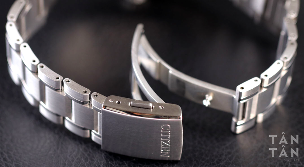 Đi cùng dây đeo là khóa gập được hoàn thiện tỉ mỉ, cực kỳ chắc chắn khi đeo trên tay cùng khóa bấm thông minh giúp gập mở dễ dàng hơn.